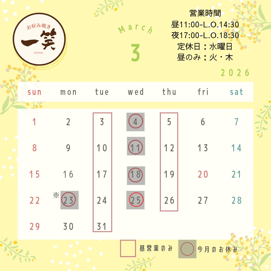 お好み焼きにしちゃんは、12月から『お好み焼き 一笑(いっしょう)』としてリニューアルオープンいたします!